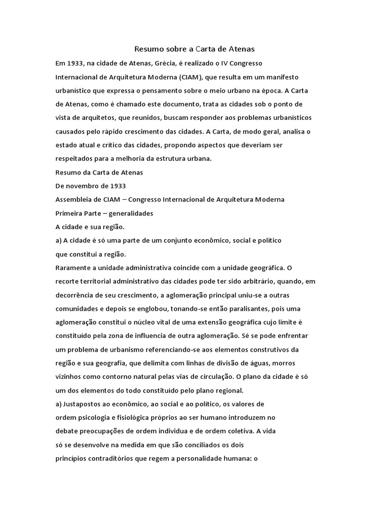 Resumo Sobre A Carta De Atenas Cidade Urbanismo via pt.scribd.com